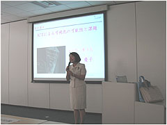 はじめにICTを活用したまちづくりで話題の三鷹市より清原市長をお招きし、お話をいただきました。誰でも・いつでも・どこでも、自らを向上しようとする市民をサポートするICT活用型のまちづくりを、民・学・産・公の「協働」で達成する意義と課題について、様々な活用事例と共に紹介いただきました。